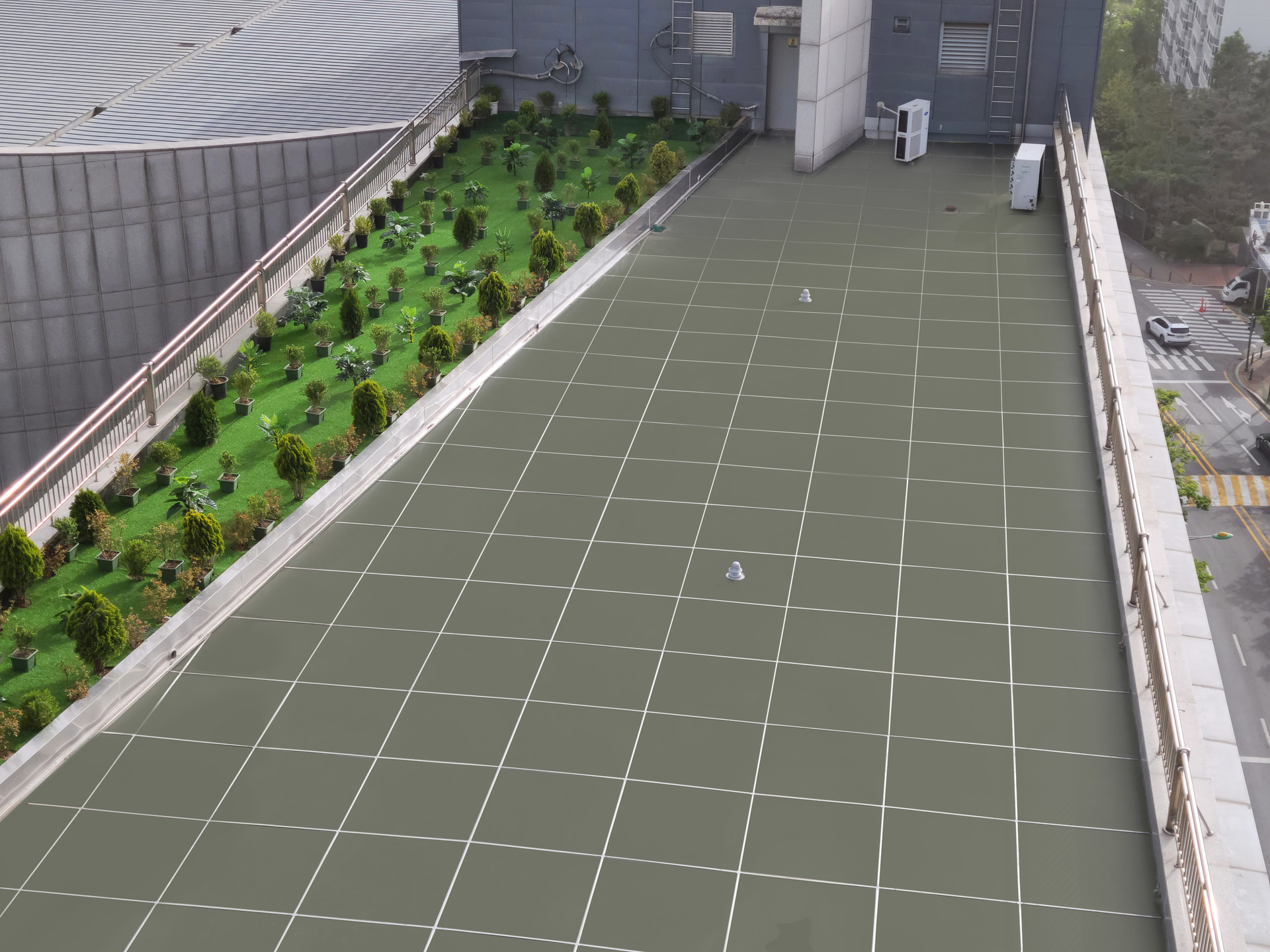 연합스틸은 바닥용 금속패널방수, 금속타일방수를 최초 개발하여 획기적인 수명 연장, 실용성 및 단열, 방진, 방음, 옥상 활용, 디자인까지